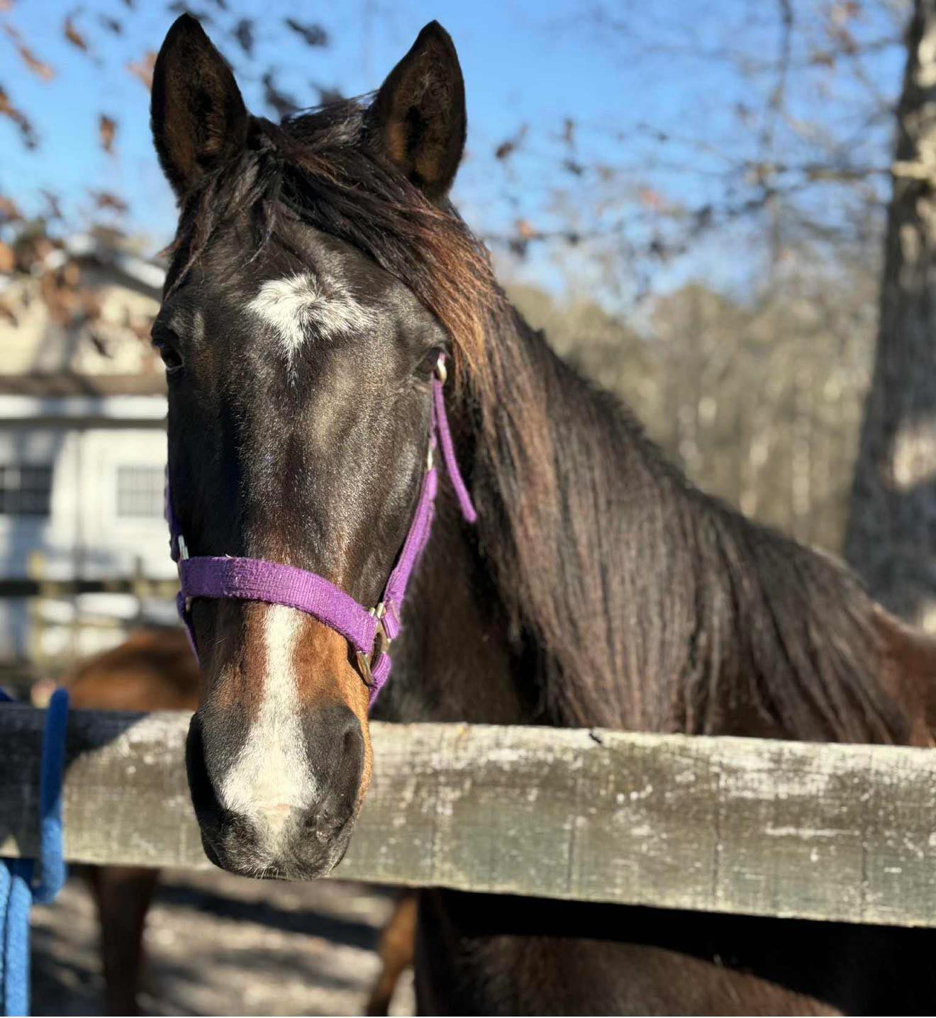 Piper is a Thoroughbred mare who was lovingly surrendered in February 2022 when her long-time owner could no longer care for her due to illness. While her exact recent history is unknown, she may have lived on a property alone for the last several years. Her registered Jockey Club name is Pipe's Perception.